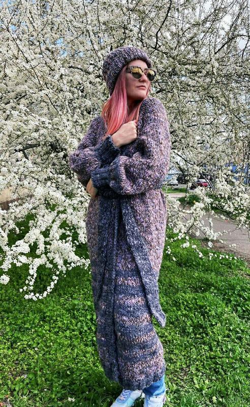 В'язане пальто-халат з поясом +шапка в стилі 70-х