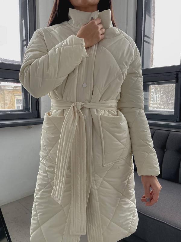 Стеганное пальто ідеального крою🥰 Стьобані вироби не складні та не об'ємні, це допоможе тобі у створенні жіночного образу і витонченого силуету •Розмір 42-44,46-48 •Наповнювач тінсулейт 150 • Виміри: • Розмір 42-44 • Розмір 46-48 на +6 см • Довжина загальна 93 Пог 49 Побіди 50 Рукав 60 (спущений)