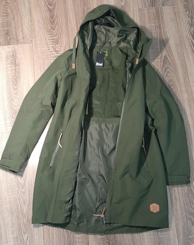 Парка жіноча , вітрозахисна водонепроникна Crivit (німеччина ) Дихаючий матеріал BIONIC -FINISH ,,EKO " - Вітрозахисна та водонепроникна завдяки проклеєним швам . - Високий комір і капюшон із регульованою шириною . - Повна гумова двустороння блискавка ; кишені на блискавці і внутришня кишеня для мобільного телефону . Регульовані манжети В наявності 40 , 42 , 44 , 46 розміри євро Наприклад євро 40 - наш 46 Розмір 40 : ПОГ 51 , рукав 66 , довжина 89 Розмір 42 : ПОГ 53 , рукав 66 , довжина 90