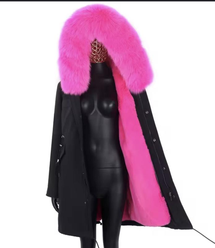 Парка чорна жіноча з вишуканим рожевим обʼємним хутром paris