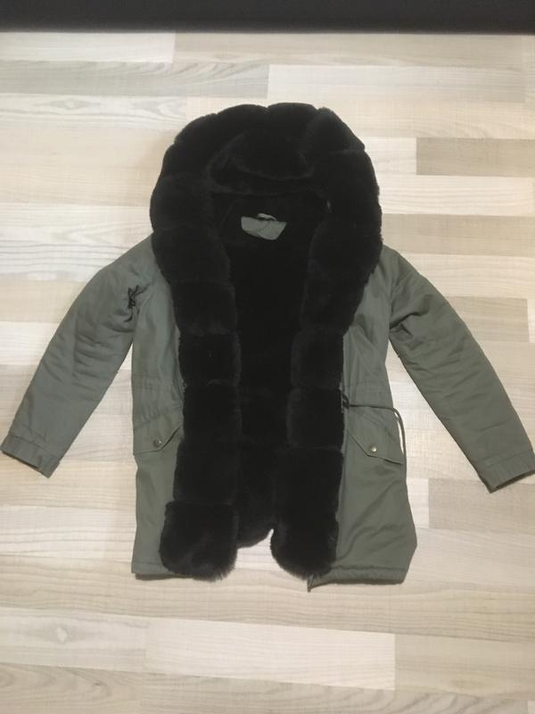 Стильная парка,мех искусственный!Смотрится стильно!Идет на размер С и на маленькую М.Есть нюанс на кармане нет заклепки и не хватает пару петелек на которые цепляется мех,заклепочка она легко вставляется и петельки или самой или в ателье .в цену учтено.