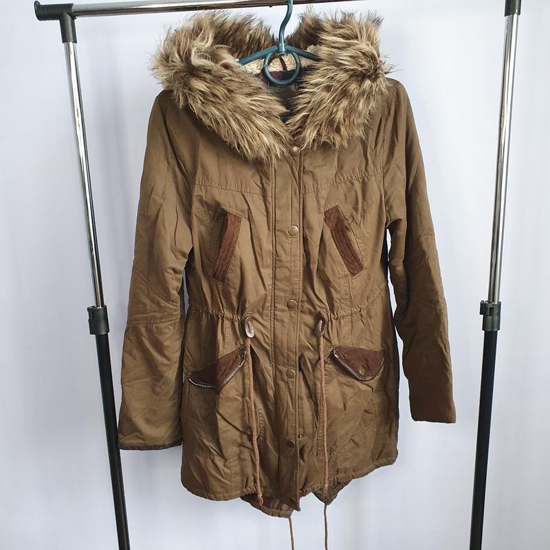 Класна осіння парка в дуже хорошому стані капішон не відчіпається (пух також не відчіпається) всі замки, кнопки робочі Розмір S