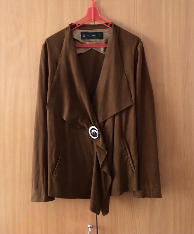 Zara крутезний жакет з кішенями. Розмір з бірки M Mex 28. Довжина 63 см. Рукав 59 см. Плечі 40 см. Тканина м‘яка, як замш.