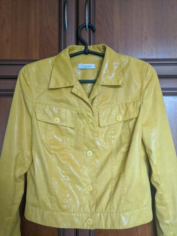 піджак без підкладу,есть плечики.Фото не передає кольору,він насиченого жовтого кольору.