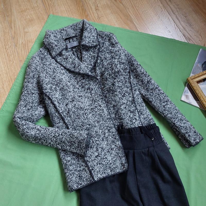 M&S Пиджак прямого кроя🖤🤍🖤 Однобортный классический Полноценная длинна(до бёдер) Цвет меланж(серый +черный) Теплый 60%шерсти в составе Без карманов Без подклада Принт модный"гусиная лапка" Прямое плечо Размер М