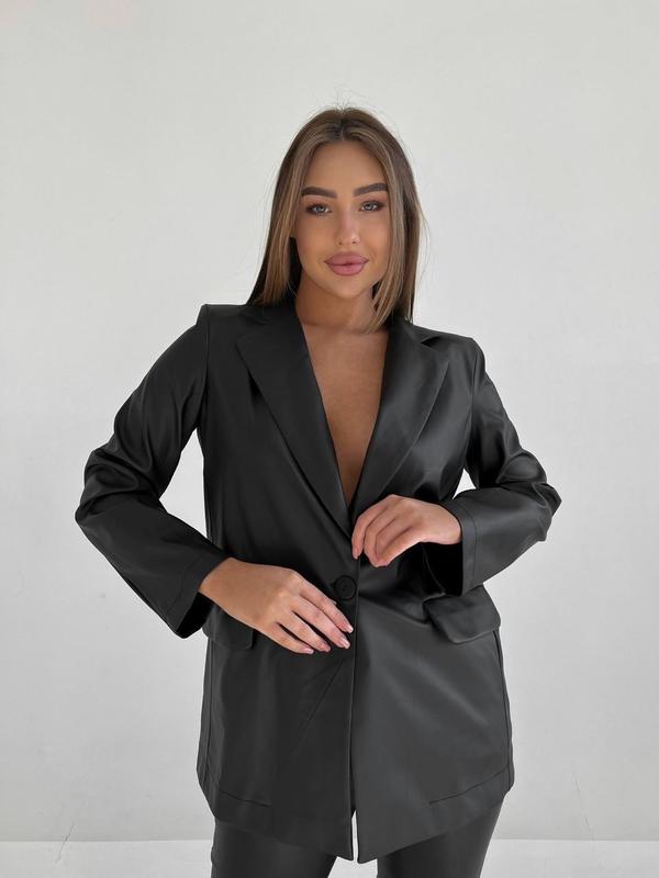 ✅є відео огляд Піджак Модель: 151 Тканина: еко-шкіра Розміри: 42-44, 44-46 Кольори: чорний Без підкладки з плечиками, робочі кишені❤️ Стильний жіночний піджак 🔥 Який зробить твій лук ще привабливішим та елегантнішим !⭐️ р 940 грн