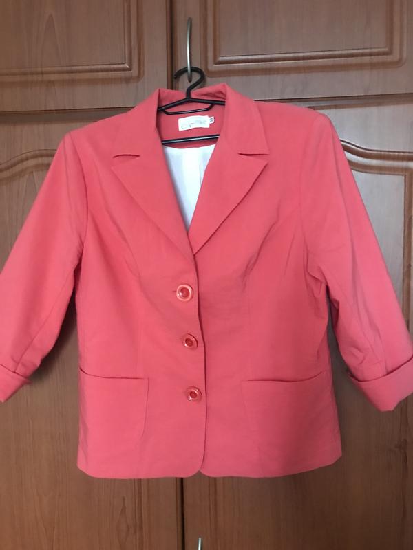 Прекрасний жакет, розмір 50, плечі — 43 см, довжина — 59 см
