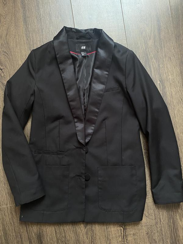Красивий чорний піджак з атласними вставками фірмиHM,розмір 36