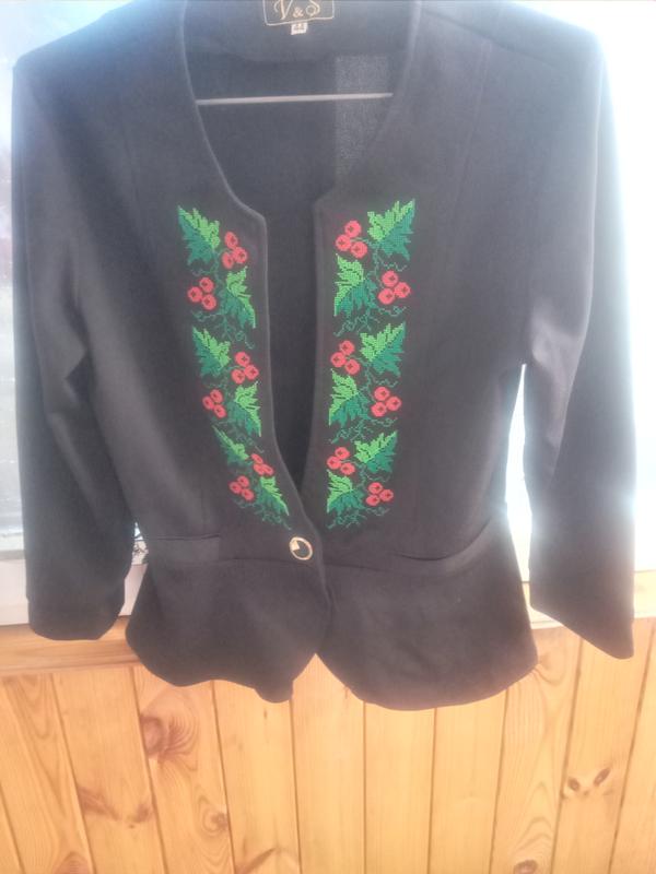 Піджак з вишивкою Баска внизу Стан ідеальний(одягнутий 2 раза) Розмір 44 Довжина 54 см Ширина 38см