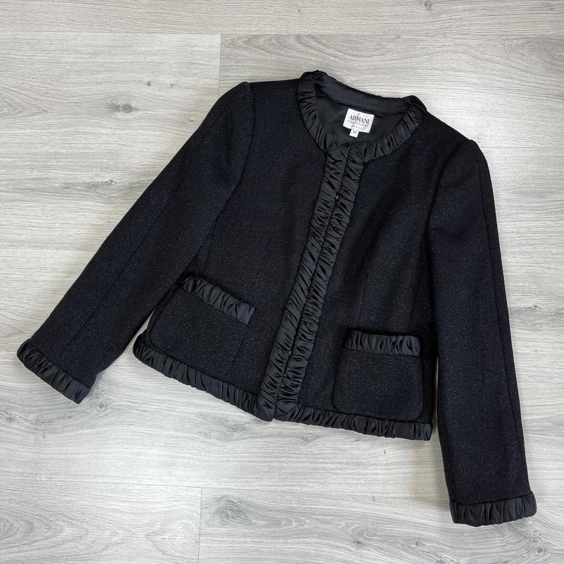 Жіночий піджак від бренду Armani Collezioni Made in Italy Піджак в ідеальному стані Матеріал: 96% шерсть, 4% поліамід Колір: Чорний Розмір: 42 Заміри: Плечі 36 см Рукав 58 см Груди 45 см Довжина 52 см Додаткові фото та заміри зроблю за проханням🖤