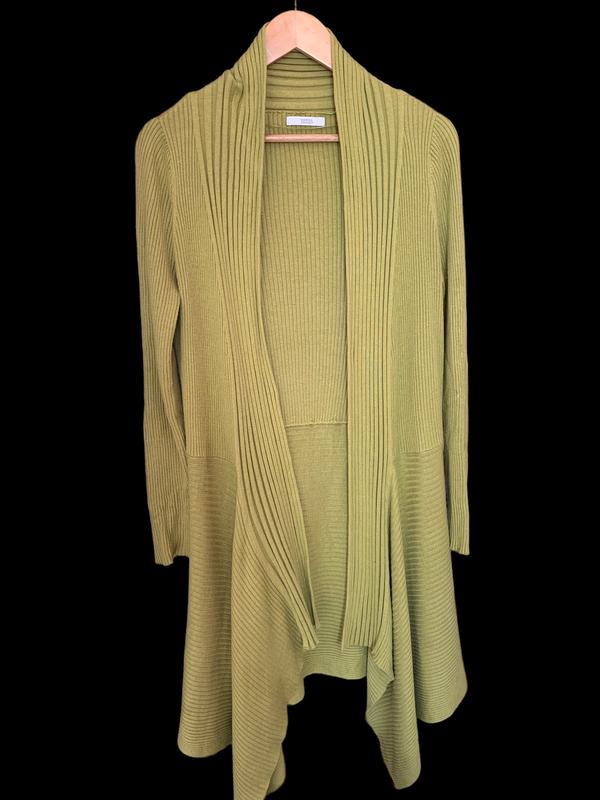 Фісташковий кардиган Marks and Spencer в ідеальному стані. Яскравий та стильний, довершить ваш образ. Тягнеться дуже добре ПОГ 45 ПОТ 42 ПОБ 51 Довжина 100 Довжина рукава 65