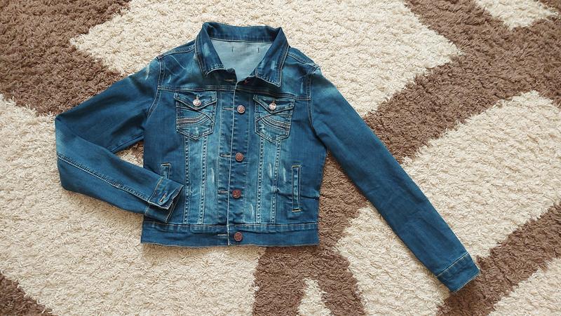 Джинсовий піджак короткий. Розмір вказано xl. Реально 38. Був у носці іноді, але стан хороший. Плечі 41, рукав 62, ширина під рукавами 46, ширина внизу 40, довжина 50. Всередині є 2 кишені. Усі потертості рідні.