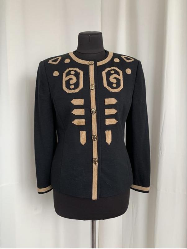 Louis Feraud EU36 UK10 У чудовому вінтажному стані є якесь потемніння на декорі у 2 місцях, см фото. Дуже малопомітно Склад на фото Довжина 60 ПОГ 51 НОТ 45 рукав 57 плечі 46