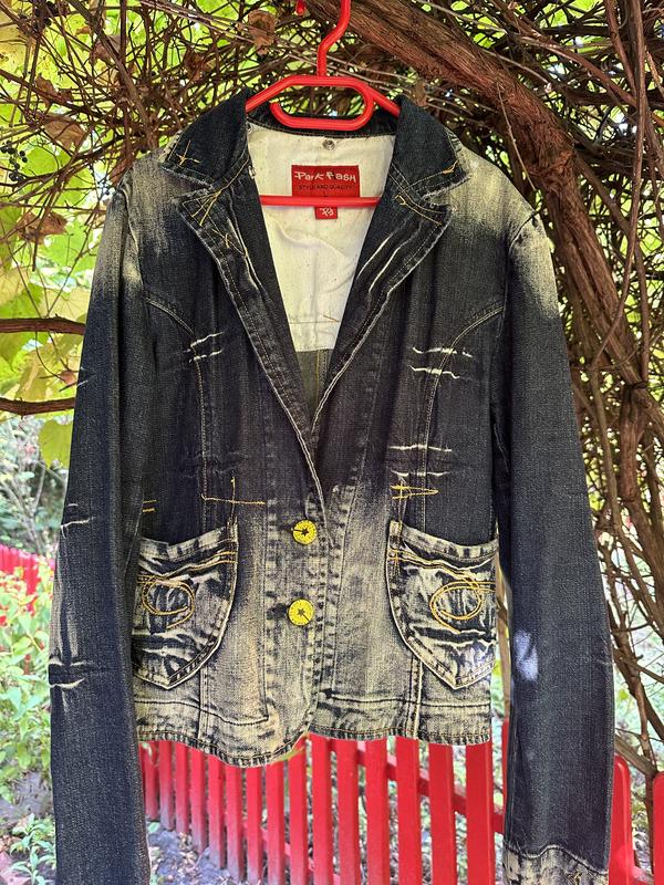 Піджак жіночий розмір L Але маломірить підійде на s -m.Зовні дуже гарно виглядає идеально.Тільки в середині підкладка в катошкаках.