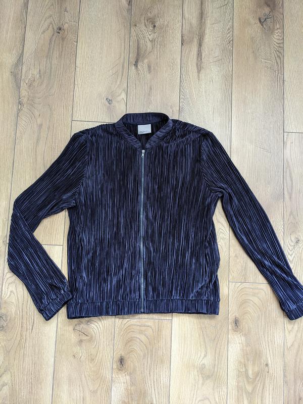 Трендовий бомбер, легкий, з тканини плісе, добре тягнеться. Дизайн від Vero Moda. Ідеальний стан, є дві кишеньки, рукава та низ на резинці. Розір на S-M, ширина 43 см, довжина 56 см, довжина рукава від плечей 60 см.