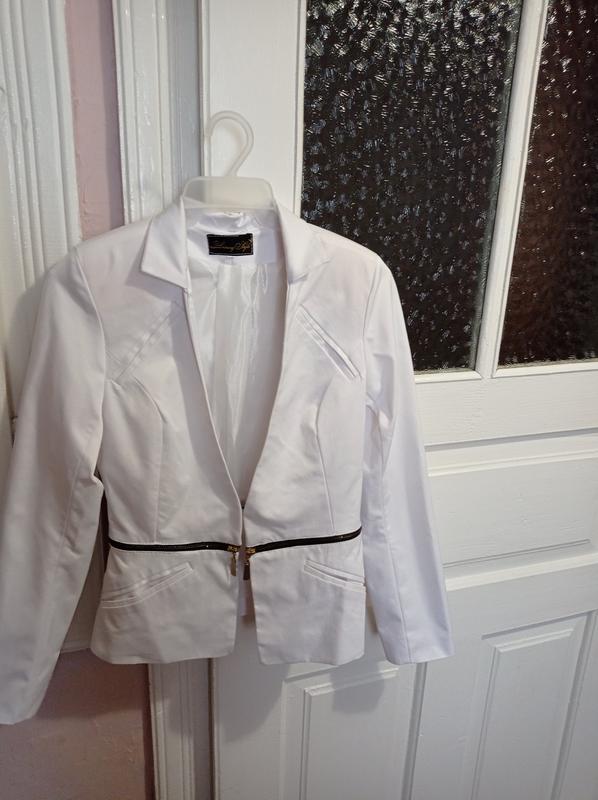 Піджачок білий новий назамочку,замочок відстібається і піджачок стає короткий, дуже гарний матеріал,легенький.