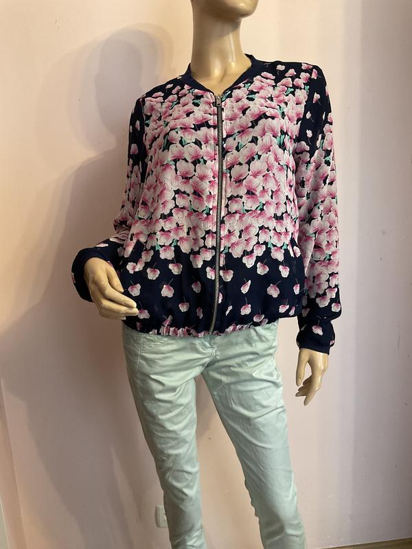 Жоржет , на підкладці крім рукавів. Кармани. Заміри в грудях51 см низ 50-52 см - резинка. Довжина 59 см рукав 61 см по окружності руки 20 см в плечах 37 см 24:1:24
