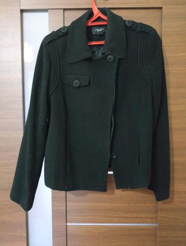 короткий жакет, пальтечко, йде як курточка або піджак на прохолодну погоду розмір L, в плечах на М-Л буде без проблем склад тканини синтетика+вовна, без дефектів TM JUNKER, застібається на гудзики, є дві врізних кишені, стан відмінний фасон прямий крій,