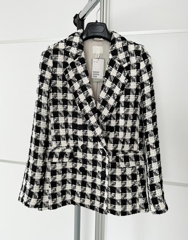 Двобортний жакет з букле h&m принт гусяча лапка жіночий трендовий фірмовий