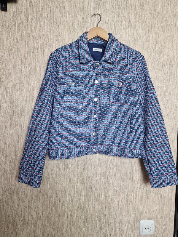 Стильний вкорочений твідовий жакет, куртка cache cache, оригінал новий Розмір 42 підійде на S-M довжина спереду від горловини 45 довж від плеча 56 ПОГ 51 Плечі 40 ПО низ 49 рукав 62