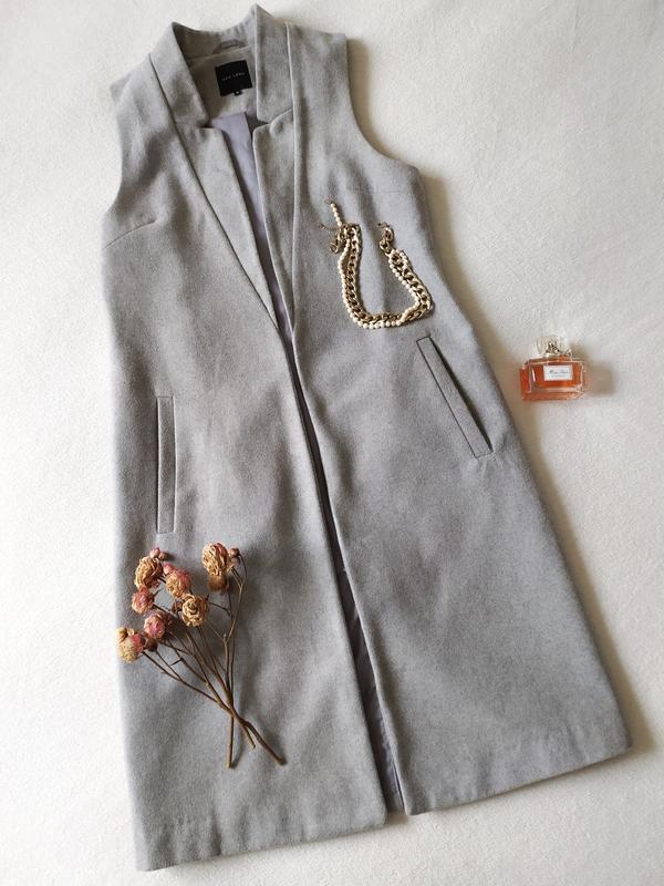 Довгий жилет кардиган світло-сірого кольору. Класно виглядає і з джинсами, і зі штанами. На підкладці. Ззаду шліц. Пальтова тканина. Комір-стійка. Розмір XS/S. ПОГ 46, довжина 100. Стан ідеальний.