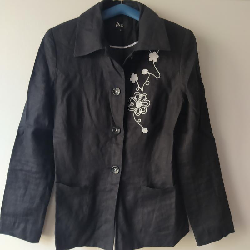 Чорний лляний піджак на підкладі.Накладні кишені, машинна вишивка.ПОТ — 41 смПОГ — 45-46 см