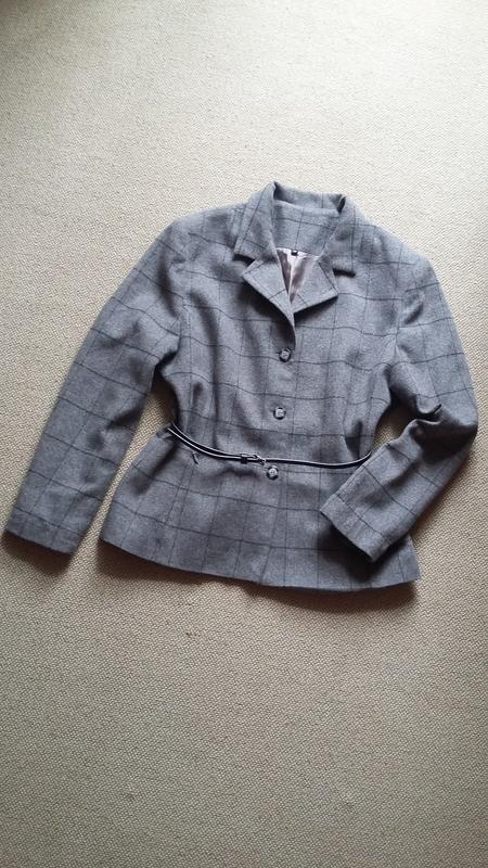 Напіввовняної жакет,тепленький,можна носити як куртку. Стан нового!!! Вказаний розмір 10,але йде швидше на 12. По дизайну йде без пояса,але з будь-яким поясочком теж красиво! Попереду потайної кишені на блискавці. Заміри: довжина від плеча 63див,плече 12,5-13см,рукав 59см,пог 52-53см,піт 48см,внизу на 56см. Телефонуйте!0669473705