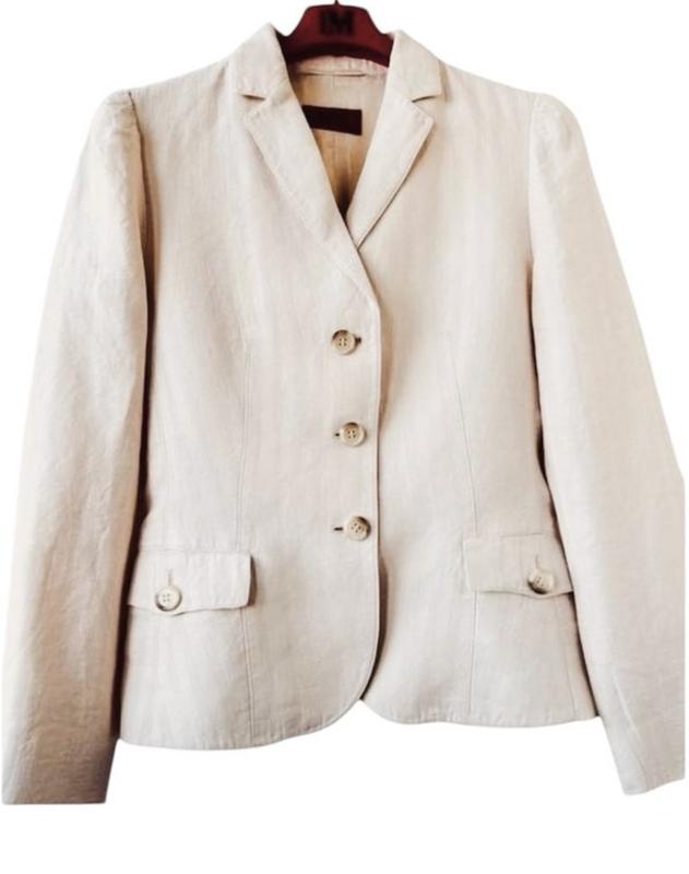 Піджак льон Hugo Boss , оригінал, шовкова підкладка, ширина плечей 37 см, напів обхват грудей 46 см, напів обхват талії 38 см, довжина 54 см, , довжина рукава 58 см-