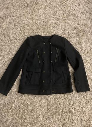 Жакет жіночий бренду OUI set. Стан нової речі. В носінні не був. Колір чорний. Фурнітура Riri. Склад: 75% вовна, 20% поліамід, 5% кашемір. Сезон весна/не прохолодна осінь. Розмір M-L (D 40, GB 14, F42, US 8, I 44 по бірці). Заміри на фото.