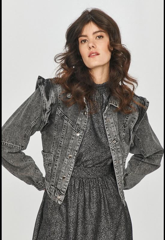 Розмір С, але я б радила на ХС. Коротка джинсовка шикарної якості, варений цупкий денім. В каруселі реальні фото, треба поставити дві кнопки (тільки всередині), ціна з урахуванням дефекту. За рахунок якості тканини, можна носити як вітровку, не продувається зовсім.