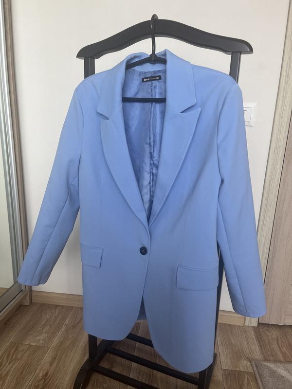 Новый женский пиджак в небосно-голубом цвете Есть карманы (только нужно прорезать) Размер 38 М Подойдет к следующим настройкам: ОБ/ОТ/ОГ 106/90/95
