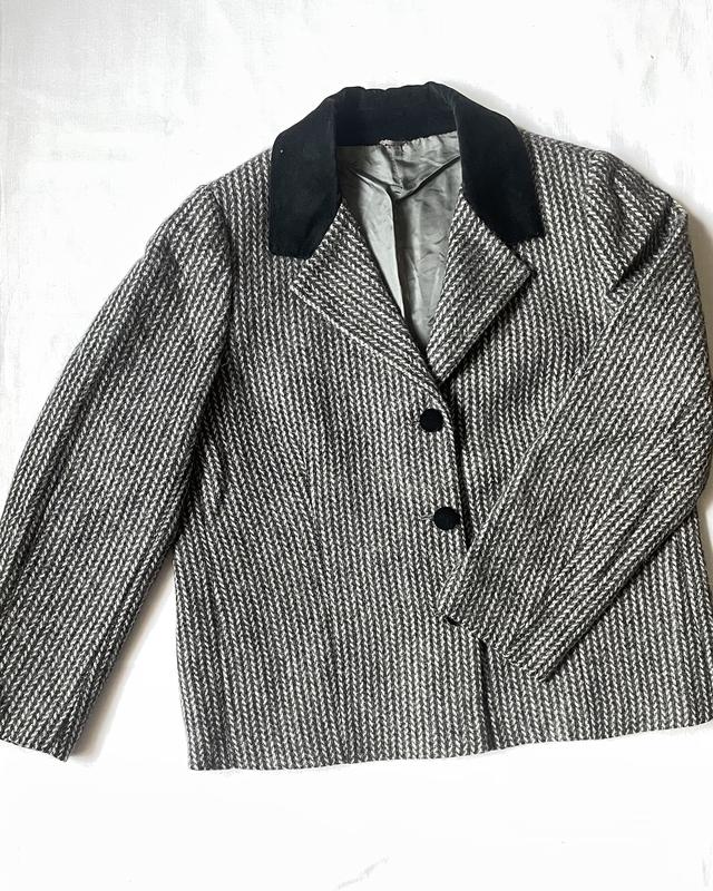 Жакет в винтажном стиле. Теплая, шерстяная ткань со вставками из черного бархата и пуговицами. Свободный крой. Стан идеален! Размер: М Параметры: В плечах 40 см Длина 60 см Полуобхват груди 54 см Длина рукава 58 см
