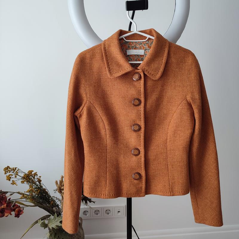 Неймовірні якості приталений піджак з вовни, 44(італійського) розміру, підійде також на 42. приємного помаранчевого кольору, у вінтажному стилі. стан ідеальний