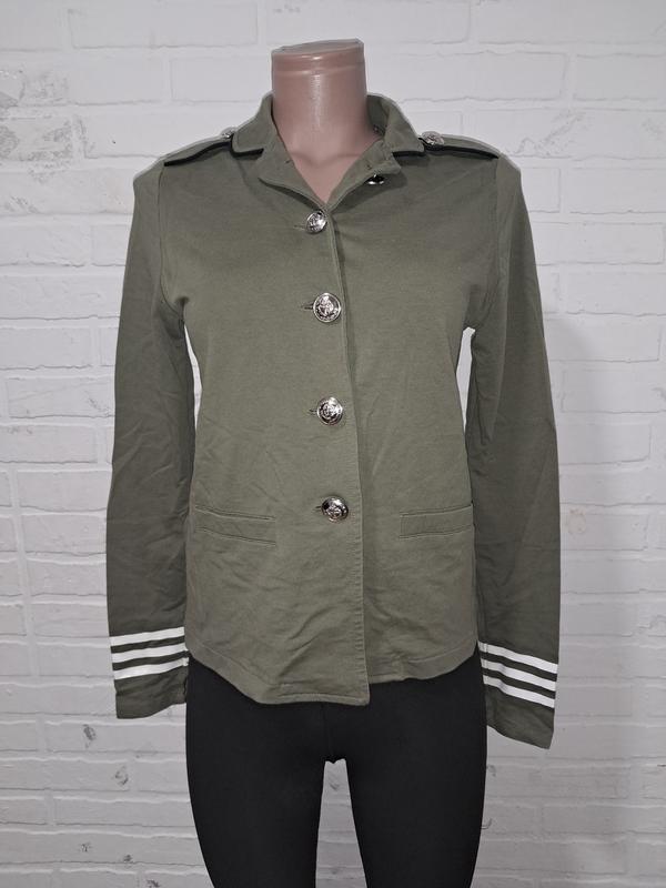стан ідеальний, як новий, без дефектів та нюансів та без слідів використання тканина середньої щільності,добре тягнеться напівобхват груди 44-50 напівобхват талії 39-44 напівобхват бедер 43-48 плечи 36-39 рукав 61 довжина 57