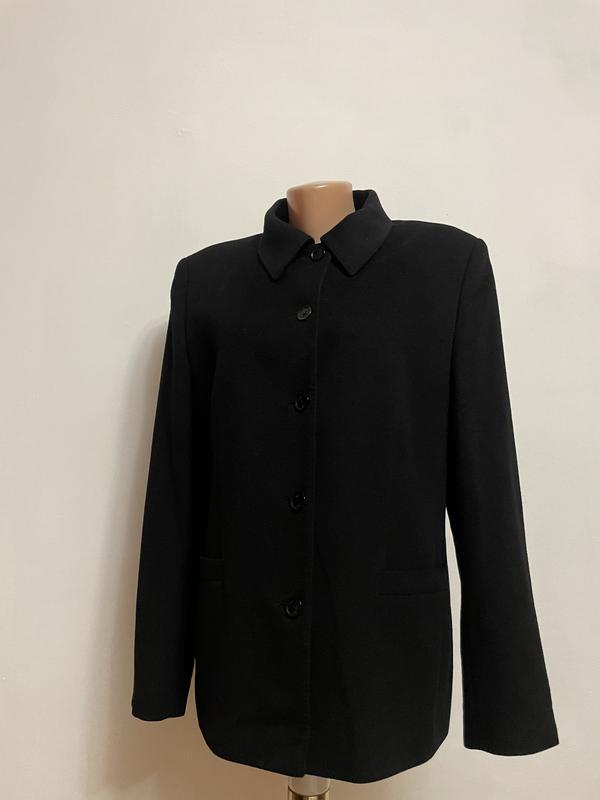 Состояние идеальное. Легкий приятный мягкой шерсти пиджак, с карманами , пуговицы именные. Ярко-чёрный‼️отправка смотреть страница обо мне‼️65/55/57. Рукава-63, плечи-44