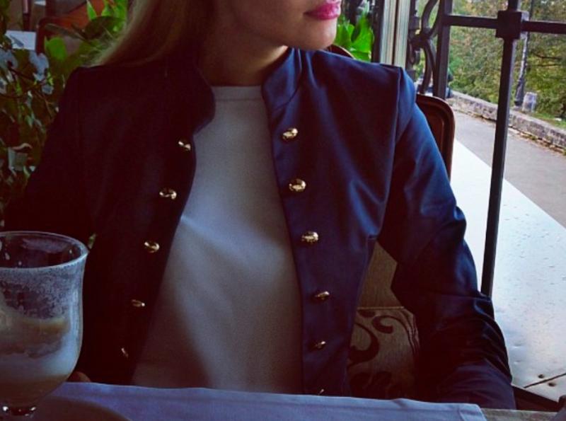 Очень красивый, синий пиджак. Тонкая ткань. Выглядит очень красиво.