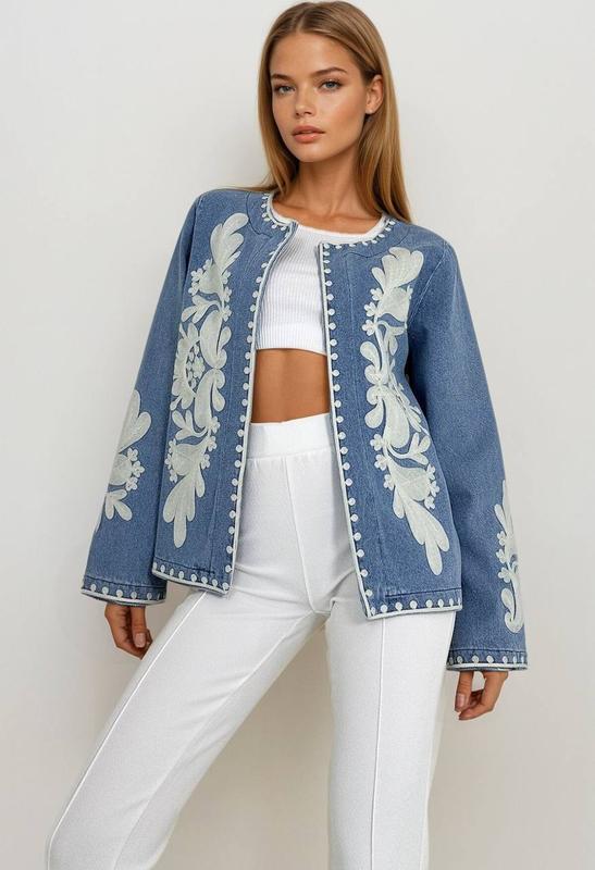 Піджак Модель 020 Піджак джинс з вишивкою Застібки немає Розмір приблизно від 42 до 50( дивись заміри Колір джинс з молочною вишивкою Похибка вимірювання +~1см Заміри: S ПОГ-50 см Довжина-61 см Довжина рукава від горловини-68 см М ПОГ -52 см Довжина-61 см Довжина рукава від горловини-69 см L ПОГ -54 см Довжина -61 см Довжина рукава від горловини-70 см
