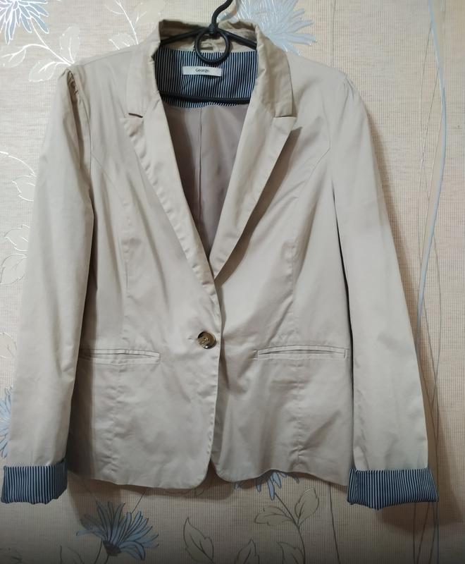 Лёгкий пиджак.Карманы.Длина рукава регулируется.Качество хорошее.Замеры на фото.Внутри подкладка. 98% Катон,2% эластан.