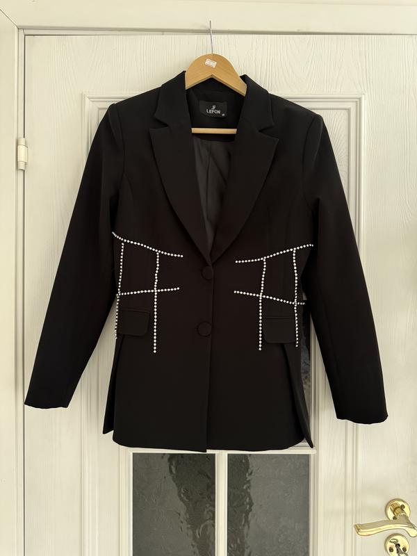 піджак апсайклінг- перешитий - вкорочений змінені плечики пришиті камінці, стан дуже хороший розмір 40 заміри на фото швидше с/м