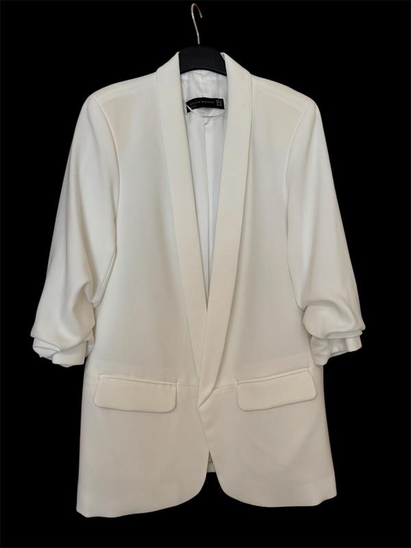 Жакет белого цвета, производство Турция, одет один раз, очень красивый фасон, рукав 3/4, размер 48 размер л