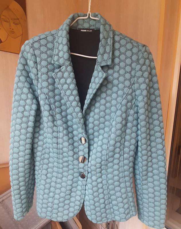 Пиджак женский,трикотажный,р.48-50, цвет мята, светло-зеленый, на металических кнопках, без карманов, вискоза, состояние отличное, есть небольшие подплечники