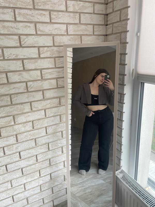 Жакет укорочений на підкладці ,застібається на ґудзик. Розмір С більшомірить