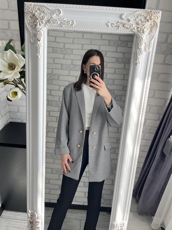 Продам піджак у клітинку фірми New Look, розмір 16 підійде на L, стан відмінний Заміри: Довжина 74см Плечі 42,5см Підпахвами 60см Рукав 53,5см