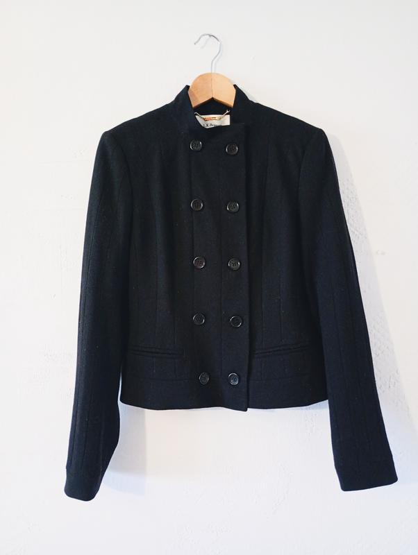 жакет з тоненкої вовняної тканини з підкладом, застібка ґудзики, комірець стійка, красиво притален і надзвичайно гарно сідає по фігурі. розмір uk 12