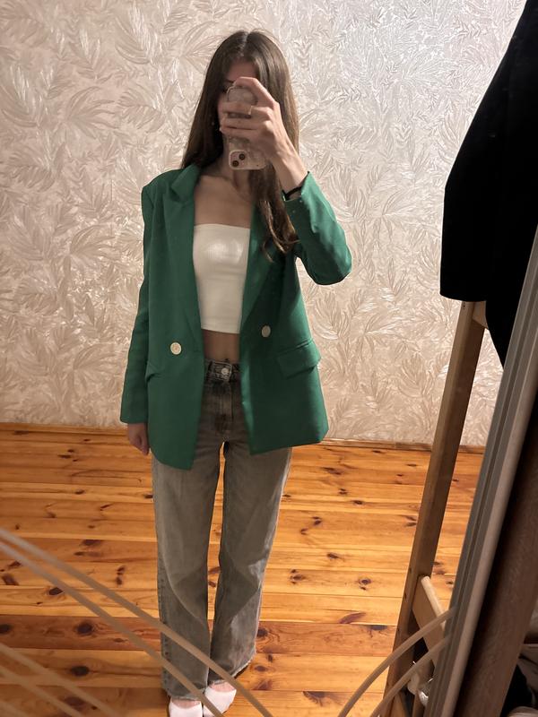 Класичний зелений піджак в розмірі s. Ідеальний стан, не одягала. Мої параметри: от-64 об-96 Зріст - 179