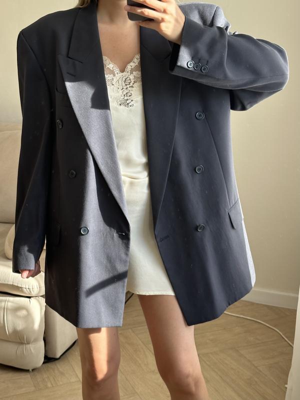Фіолетовий двобортний піджак з чоловічого плеча оверсайз
