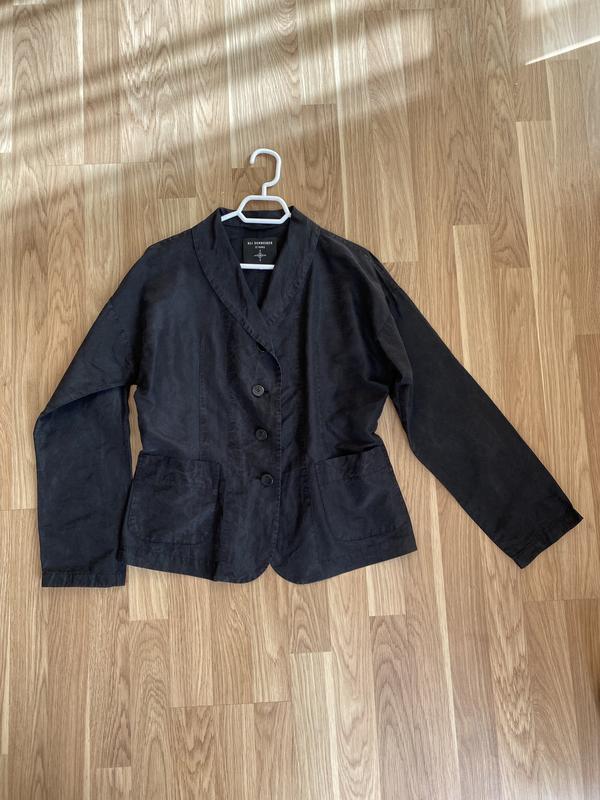 Піджак Uli Schneider Stars 100% шовк насиченого чорного кольору з малюнком ефекту ʼкракелюрʼ. Камера нажаль поблизу не передає насиченість чорного кольору- враховуйте це. Розмір 38. Для консультації та замовлення пишіть