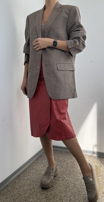 Піджак в коричнево-бежевих тонах, в ідеальному стані. Розмір зазначено 50. Заміри: Довжина 75, плечі 48, рукав 66, пог 56, пот 52, ширина по низу 56