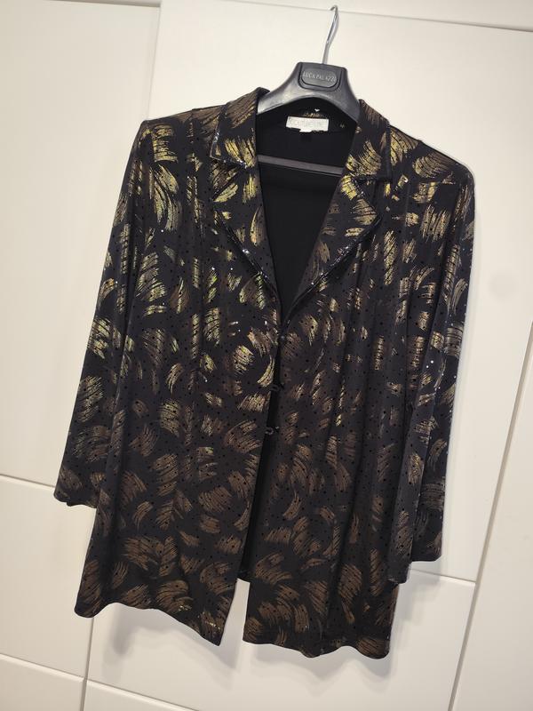 Яркий праздничный пиджак с золотой абстракцией и поедками лёгкий приехал с Италии р48+))) замеры по требованию доп инф пишите договоримся 🤝