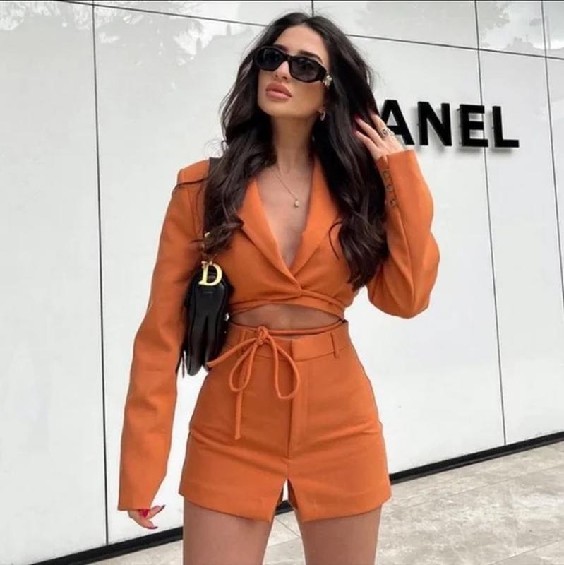 Піджак вкорочений жакет із завʼязками помаранчевий топ